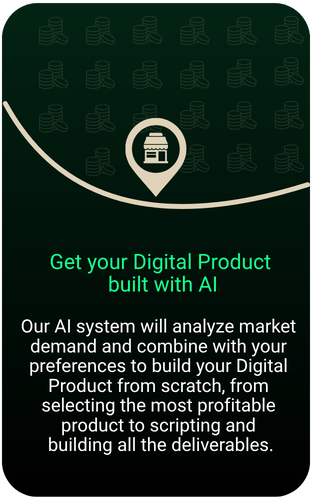 No guesswork. No tech. No expertise needed. We don’t just give you prompts — we build your digital product for you. Using our proven AI framework, we’ll create a complete, ready-to-sell product in a high-demand niche — so you can launch fast, profit faster, and stay 100% faceless.